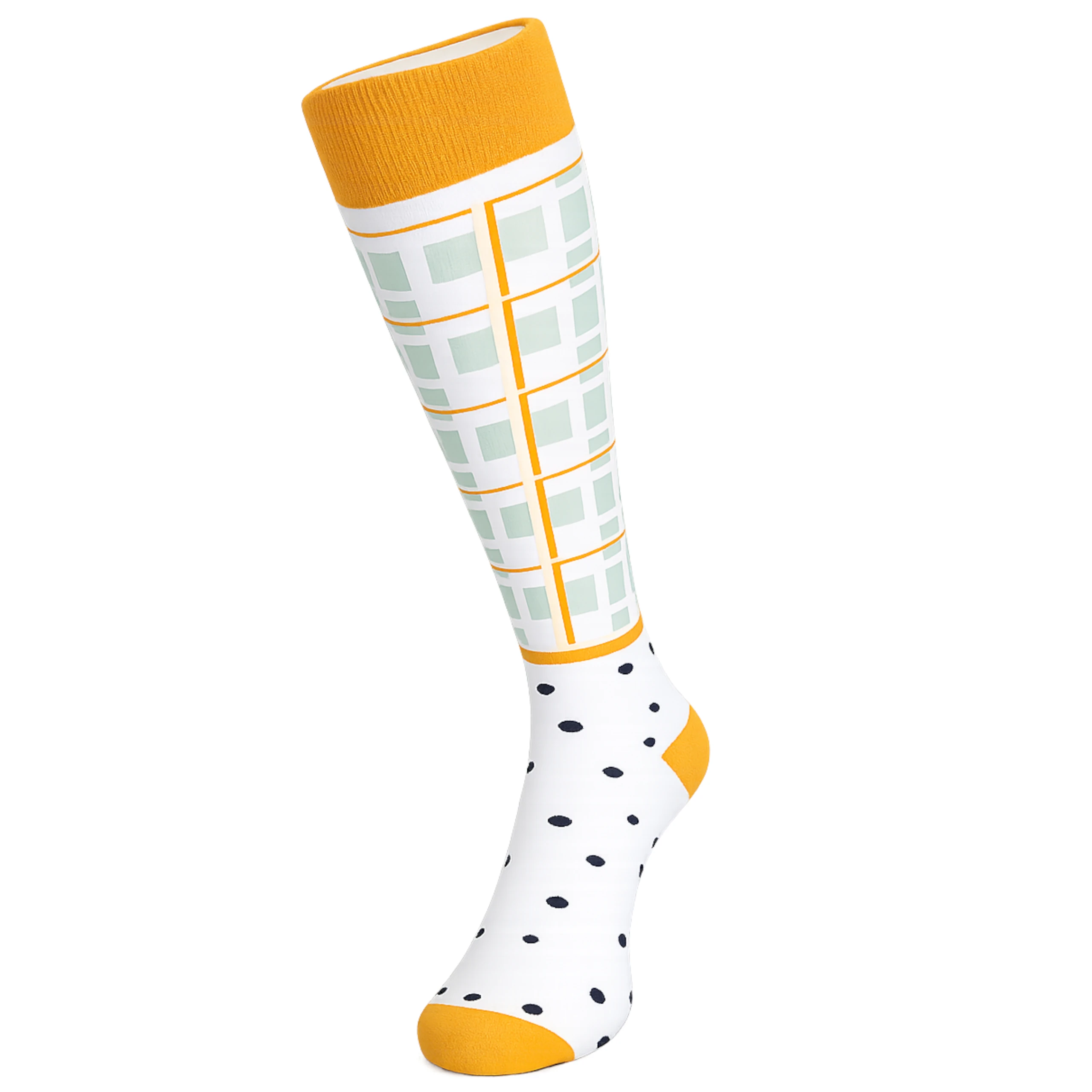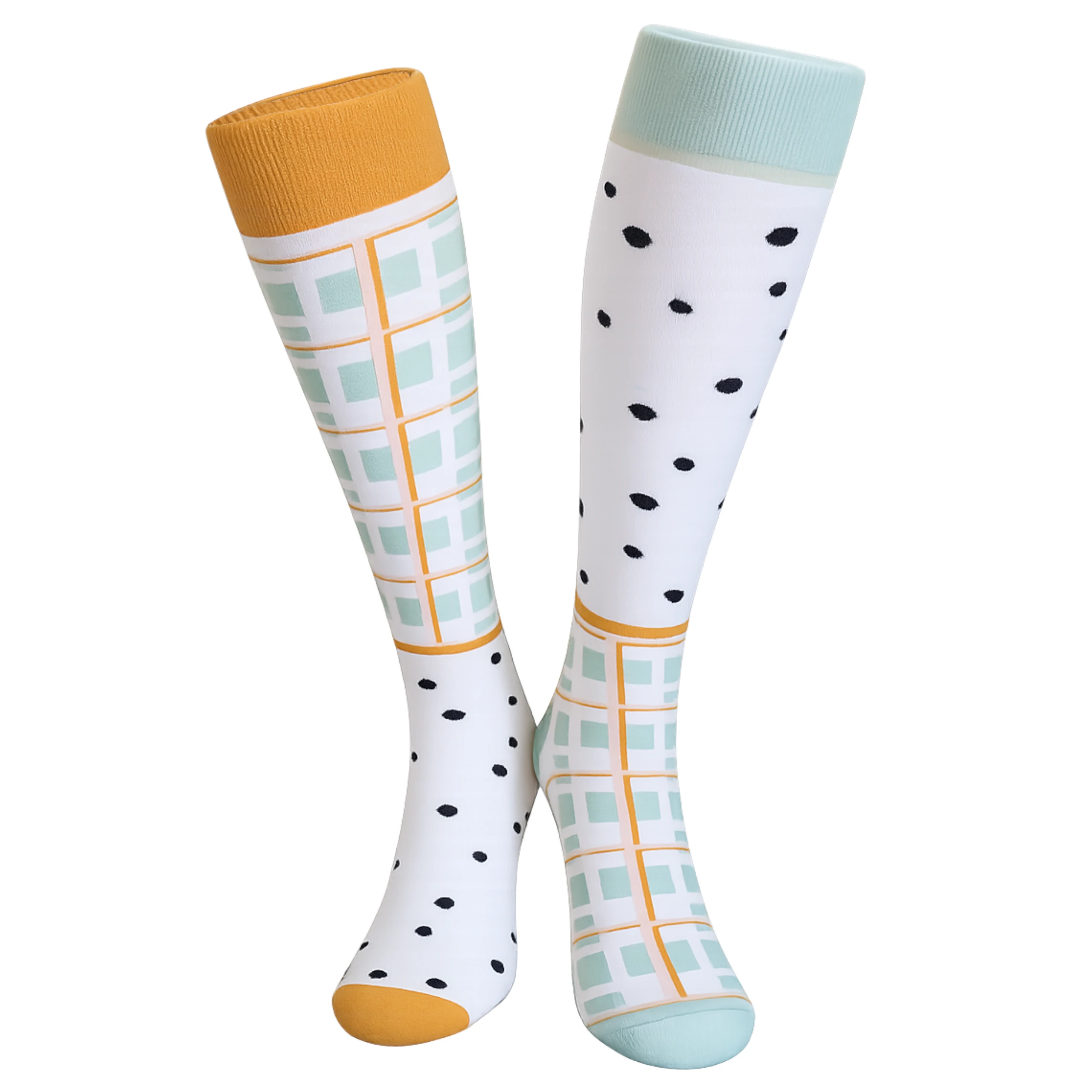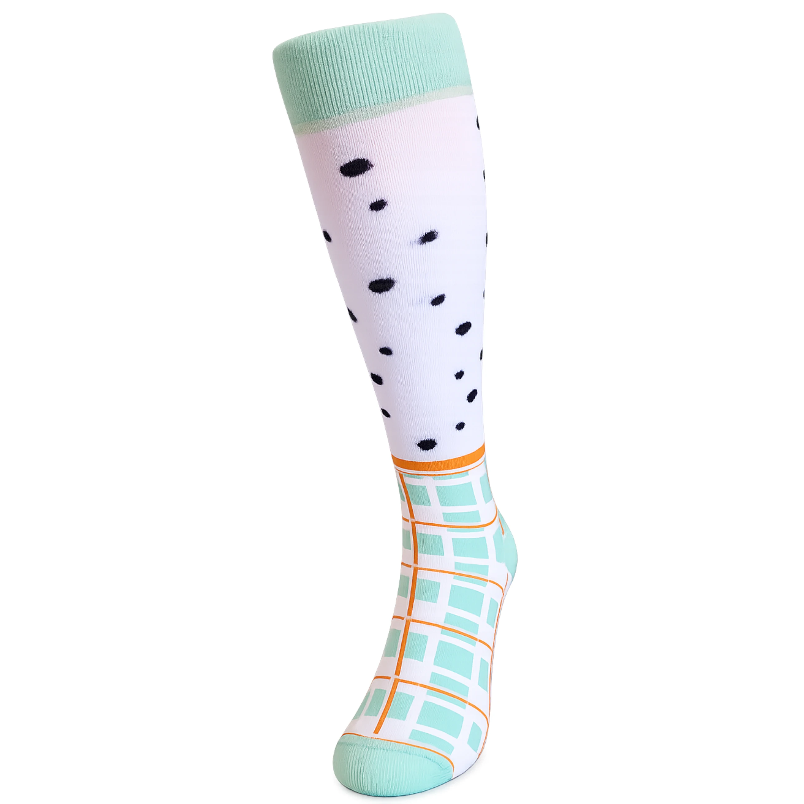 Kolorowe damskie podkolanówki o nowoczesnym, geometrycznym wzorze to idealny wybór dla kobiet, które lubią łączyć wygodę z oryginalnym stylem. Miękki, elastyczny materiał zapewnia komfort przez cały dzień, a połączenie kontrastowych kolorów i modnych motywów dodaje charakteru każdej stylizacji. Doskonałe do codziennych outfitów, pracy czy jako wyrazisty akcent w eleganckim looku