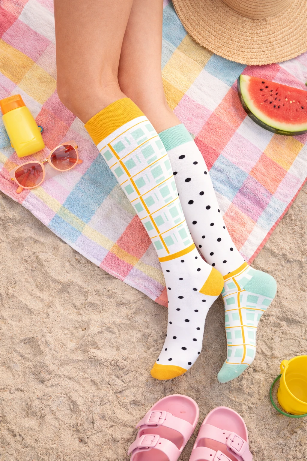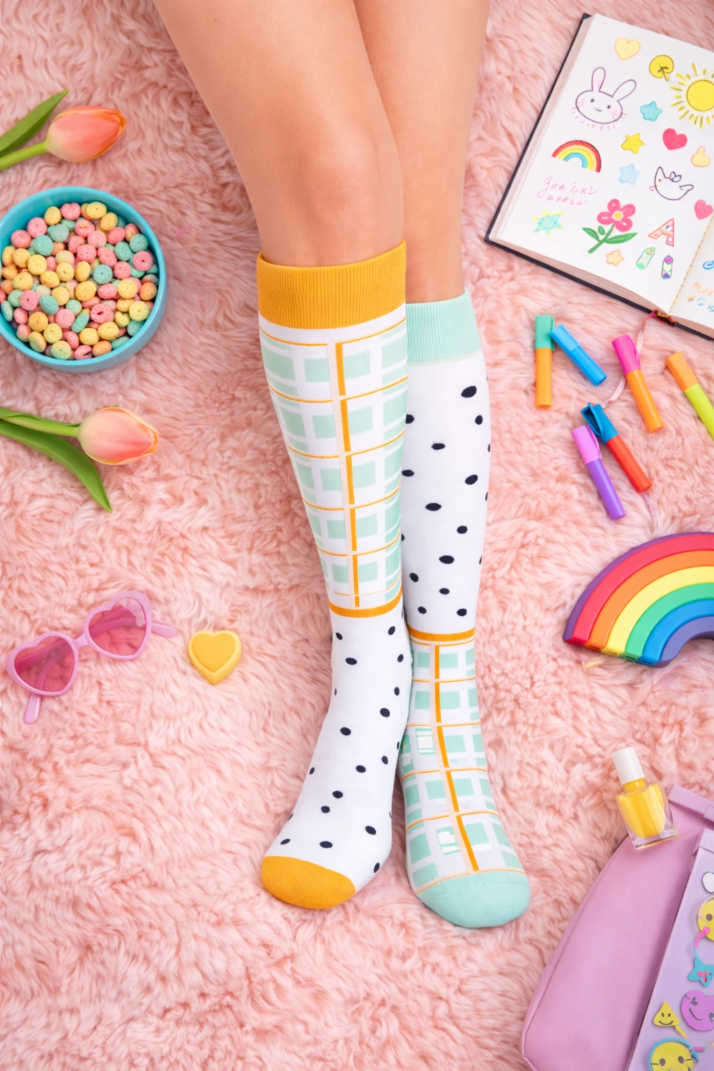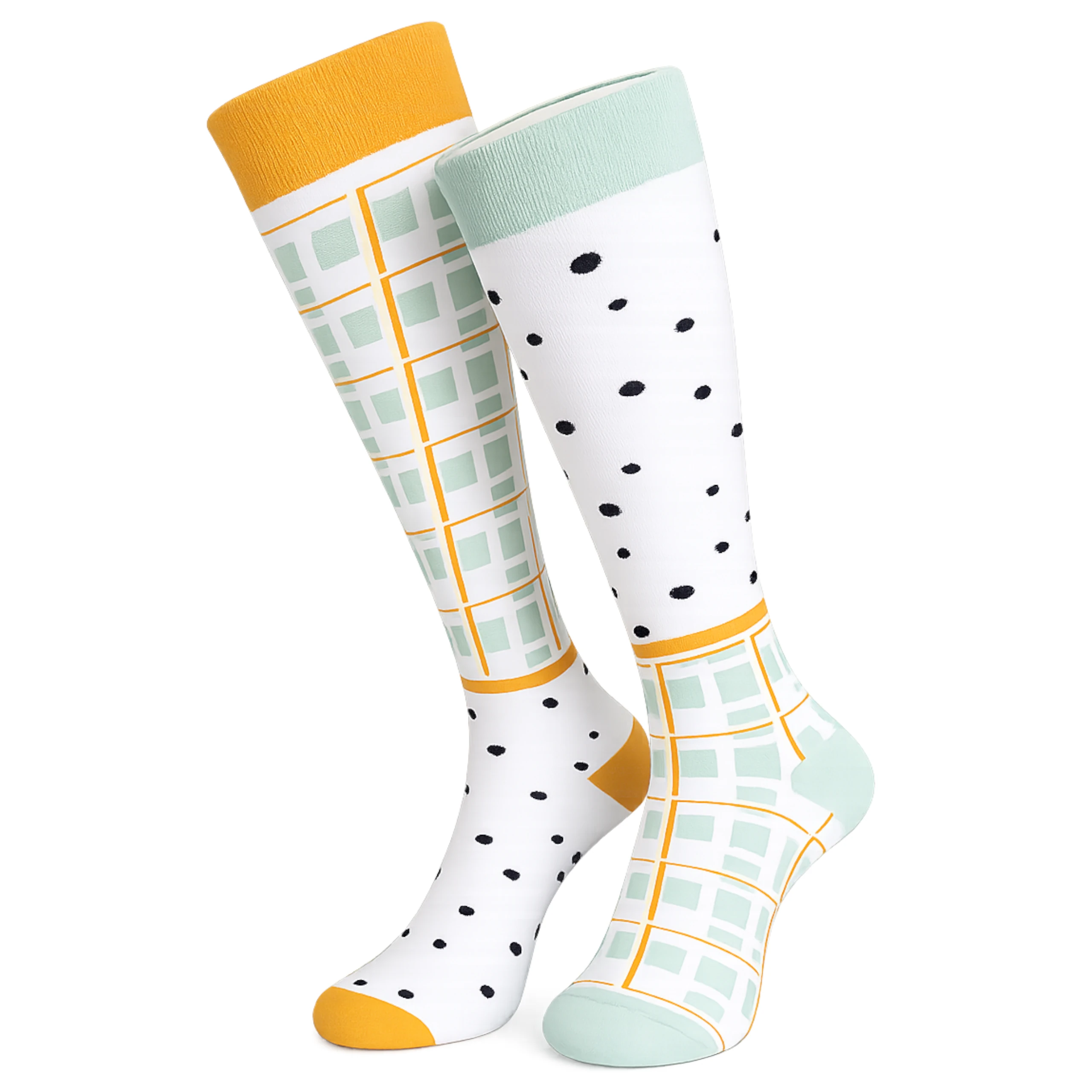 Kolorowe damskie podkolanówki o nowoczesnym, geometrycznym wzorze to idealny wybór dla kobiet, które lubią łączyć wygodę z oryginalnym stylem. Miękki, elastyczny materiał zapewnia komfort przez cały dzień, a połączenie kontrastowych kolorów i modnych motywów dodaje charakteru każdej stylizacji. Doskonałe do codziennych outfitów, pracy czy jako wyrazisty akcent w eleganckim looku