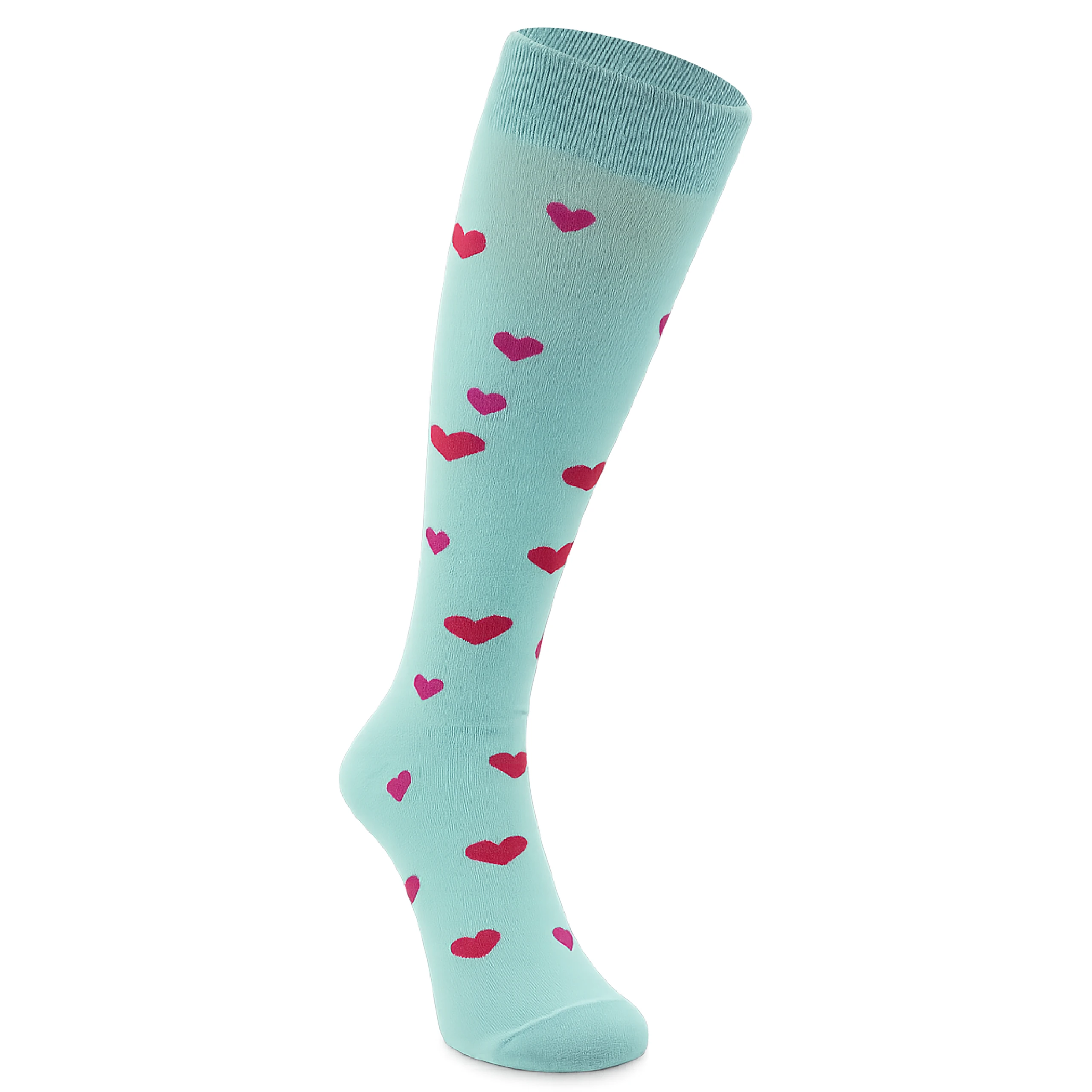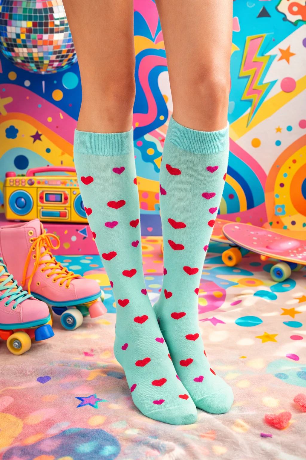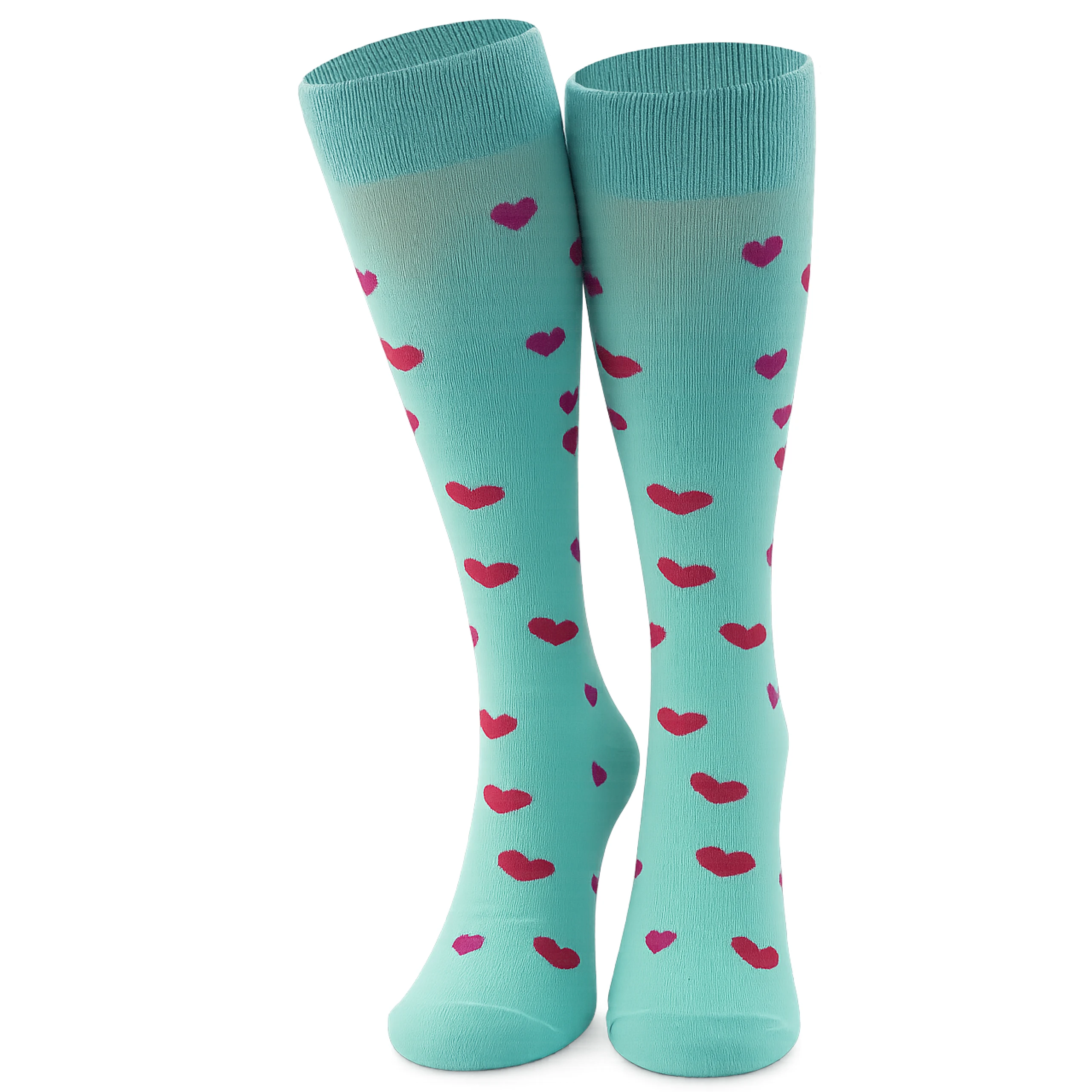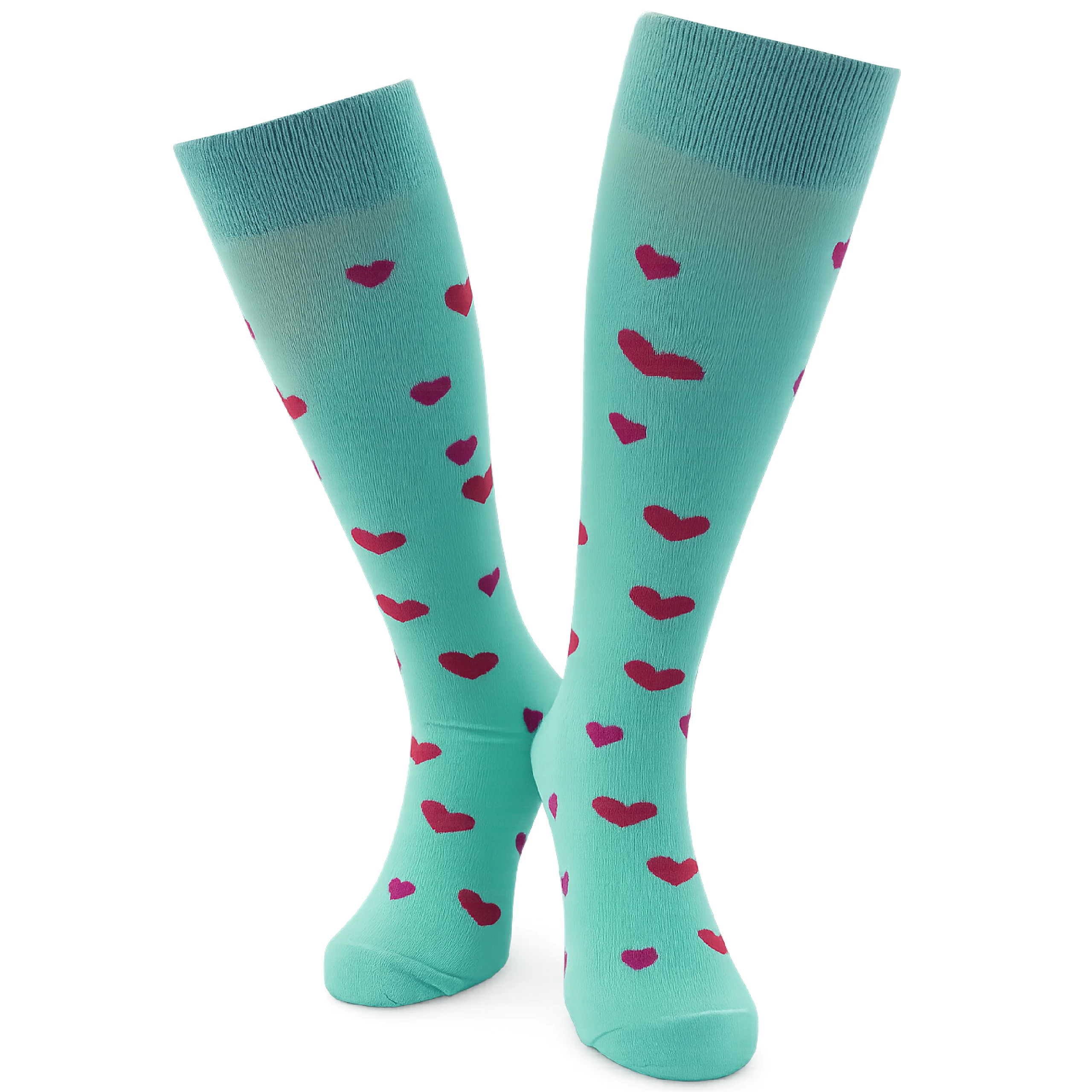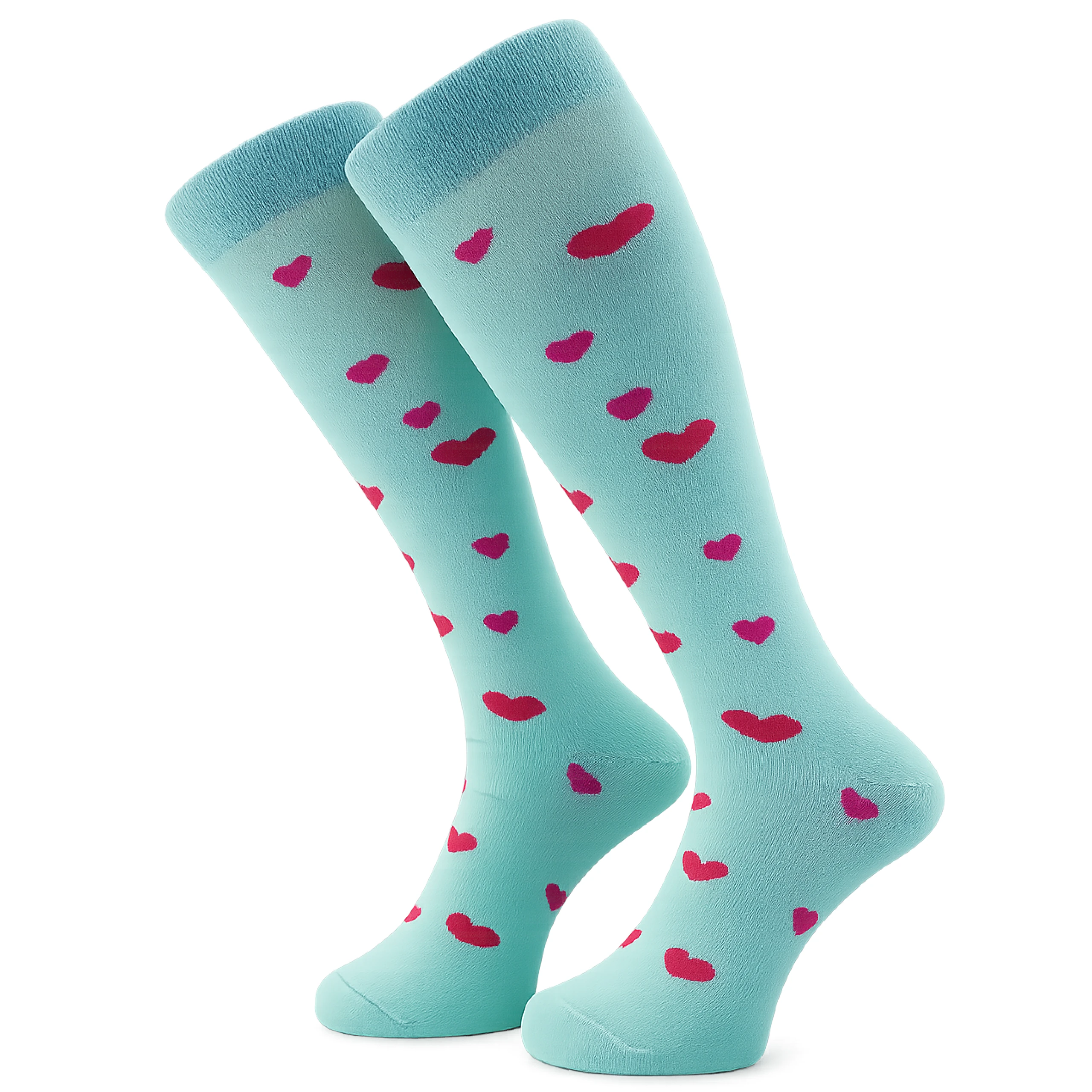 Te miętowe podkolanówki w serduszka łączą wygodę z wyrazistym, radosnym designem, dzięki czemu świetnie sprawdzają się jako modny akcent w codziennych stylizacjach. Miękka bawełna dopasowuje się do nogi, a długość do kolan podkreśla ich dziewczęcy charakter. Wzór czerwonych i różowych serduszek dodaje im lekkości i sprawia, że przyciągają uwagę — idealne dla osób, które lubią bawić się modą i szukają dodatków z osobowością.