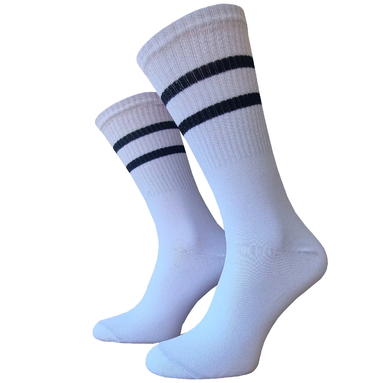 Długie skarpetki sportowe białe z czarnymi paskami – klasyka, która zawsze trafia w punkt! 🧦⚡⚫