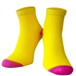 Te żółto-różowe skarpetki za kostkę wyglądają, jakby powstały ze słońca i waty cukrowej. Zakładasz je i czujesz: dziś będzie kolorowo, wygodnie i z lekkim przymrużeniem oka.